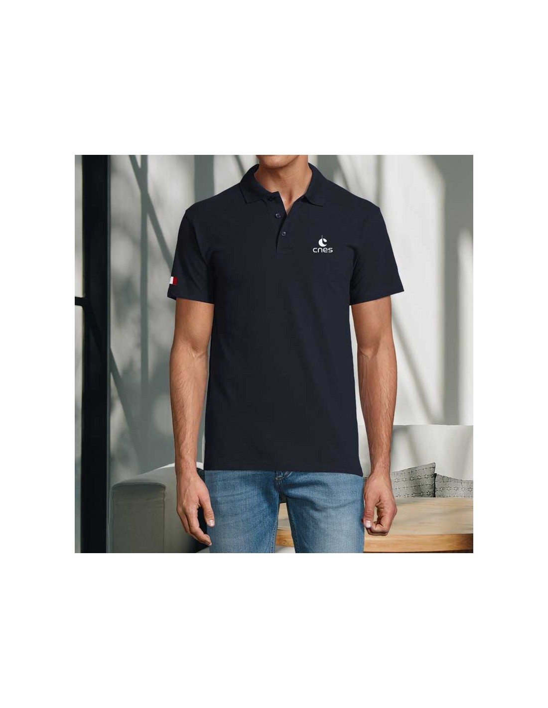 Men's "Made in CNES" navy blue polo shirt