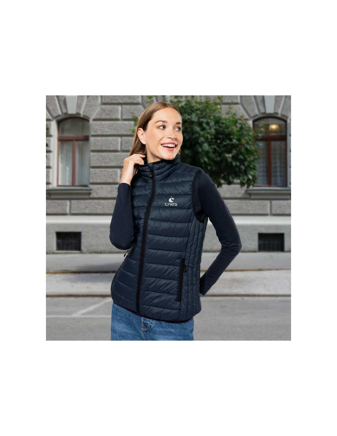 Wear the CNES colours with this warm, ultra-light, sleeveless down jacket.