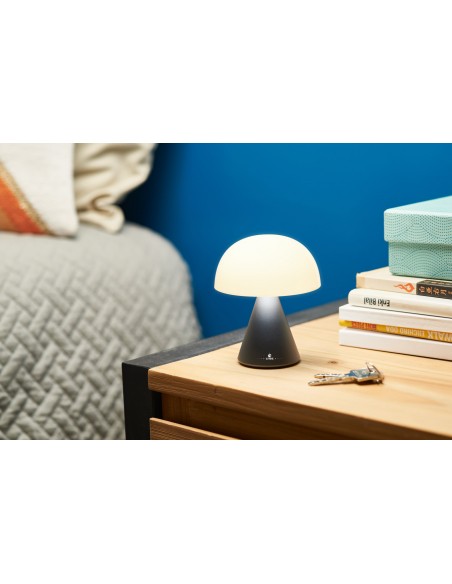 With 9 mood colours, Mina L will light up your bedside table, office or garden to suit your mood. Change the LED colour or intensity by simply pressing the top of the lamp.