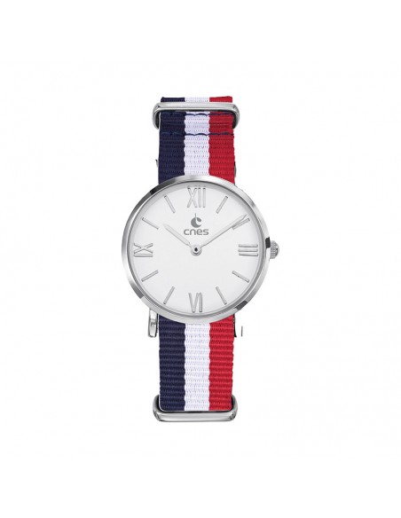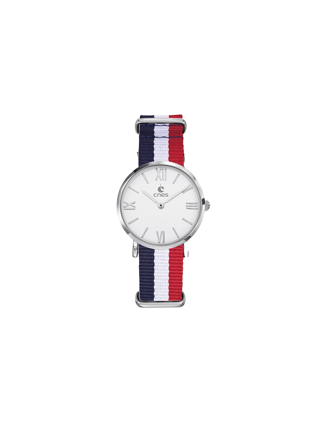 This CNES watch combines watchmaking expertise with modern design. With its tricolour textile strap (NATO-style) and its Citizen 2035 precision movement, it blends technical performance and elegance.
