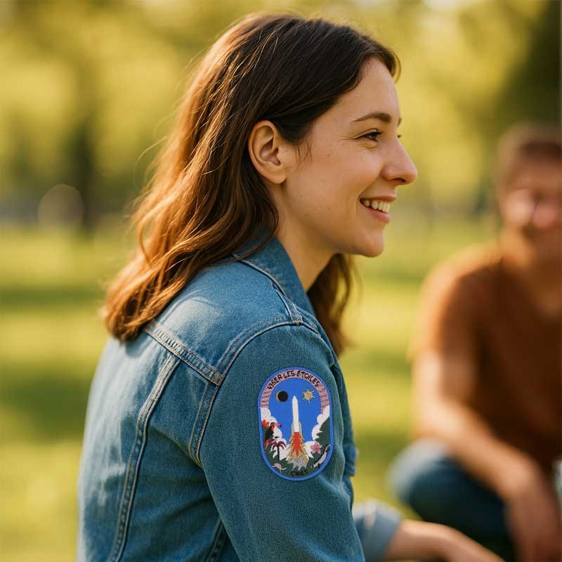 Macon & Lesquoy, marque française, a imaginé pour nous des broches brodées à la main ici sur Terre, et des écussons à thermocoller sur vos combinaisons d’aventuriers de l’espace. Des clins d’œil aux plus beaux patchs de missions spatiales, à porter sur Terre ou plus haut encore.
