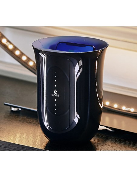 L’Oblio CNES est une station de charge à induction au design unique et élégant en forme de vase qui permet également d’éliminer les virus et bactéries lorsque votre smartphone est en charge.
