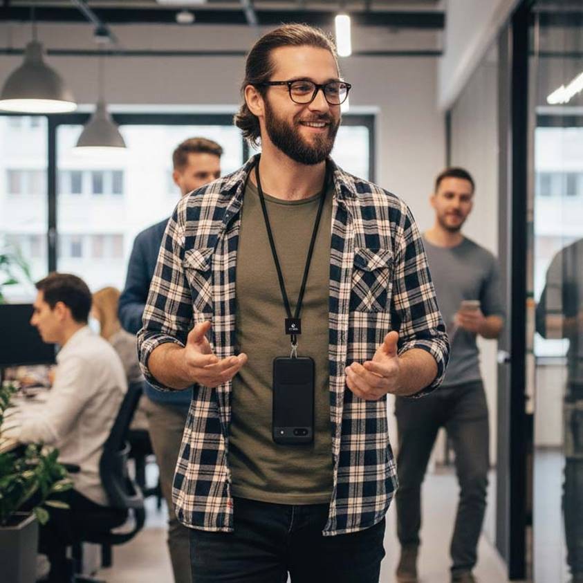 Le cordon tour du cou du CNES est l'accessoire idéal pour sécuriser et garder votre téléphone accessible, avec un style sobre et moderne. Fabriqué en polyester issu de matières recyclées (40% du poids total) et sans PVC, il s'inscrit dans une démarche de réduction d'impact environnemental.