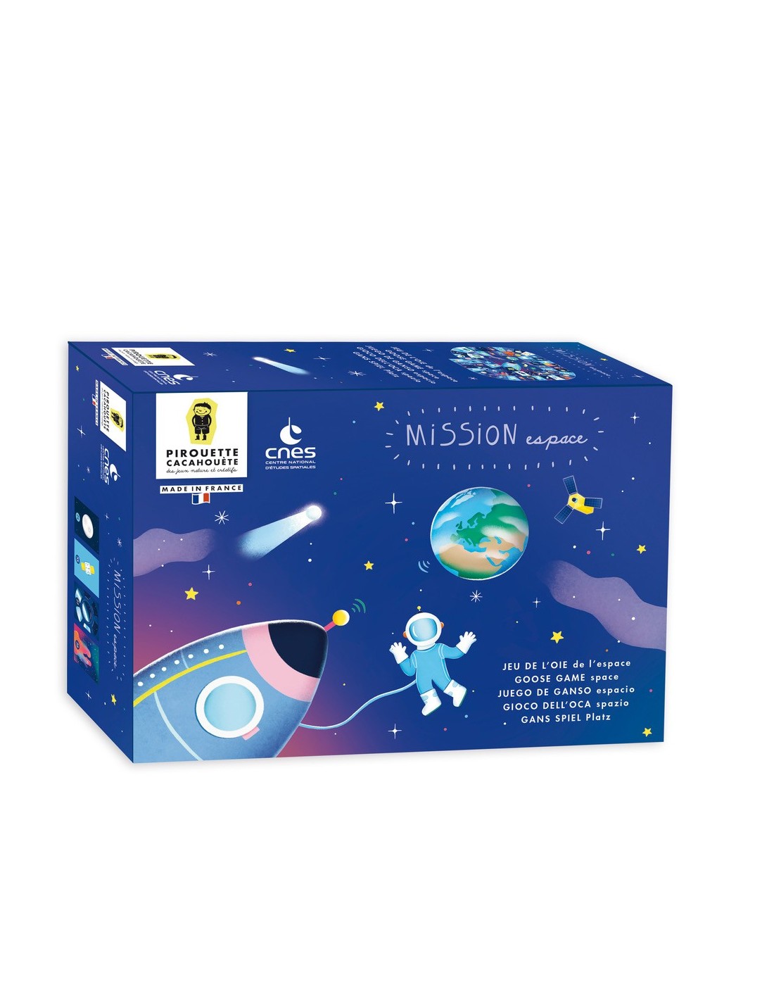 Véritable jeu de l'oie de l’espace, éco-conçu par Pirouette Cacahouète en partenariat avec le CNES et fabriqué en France.