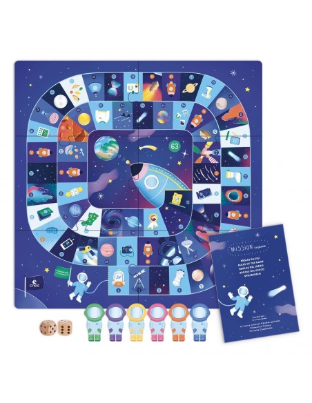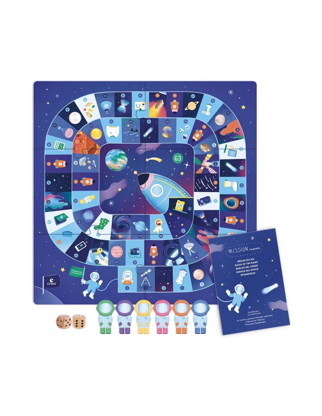 Partez à l'aventure tout au long de la célèbre spirale de ce jeu de société classique et intemporel élaboré en partenariat avec le CNES. Les enfants s'amuseront à lancer les dés et avanceront leur astronaute pour atteindre « l’objectif Terre » en déjouant différents pièges. Dès 4 ans. À découvrir en famille sans plus attendre.