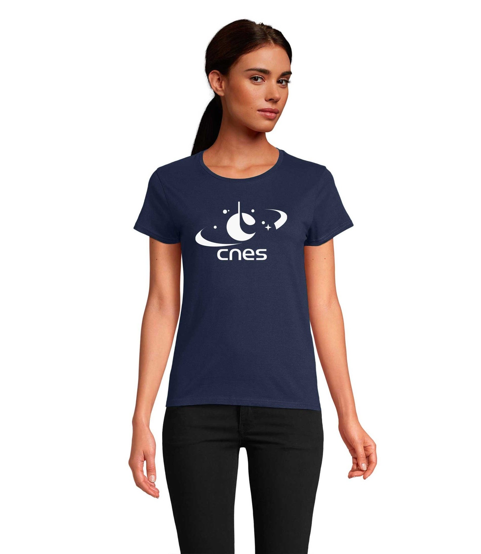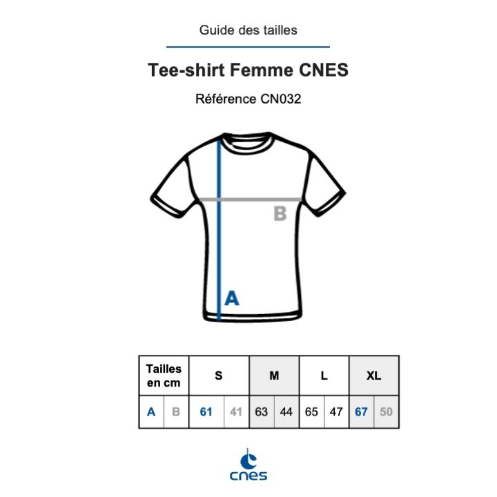 Blue "Made in CNES" T-shirt with a natural enzyme treatment giving an extremely soft and smooth feel. Recognizable at first glance, wear the CNES colours and become an ambassador of French space!